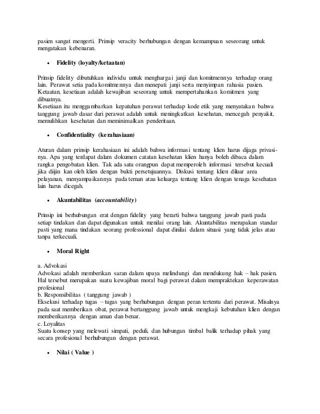 Paling penting dari praktek keperawatan terutama pada. Sesungguhnya dan fidelity menepati janji. Dilakukan perawat sesuai moralnilai yang berlaku.
